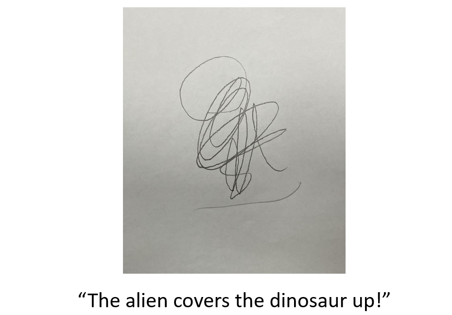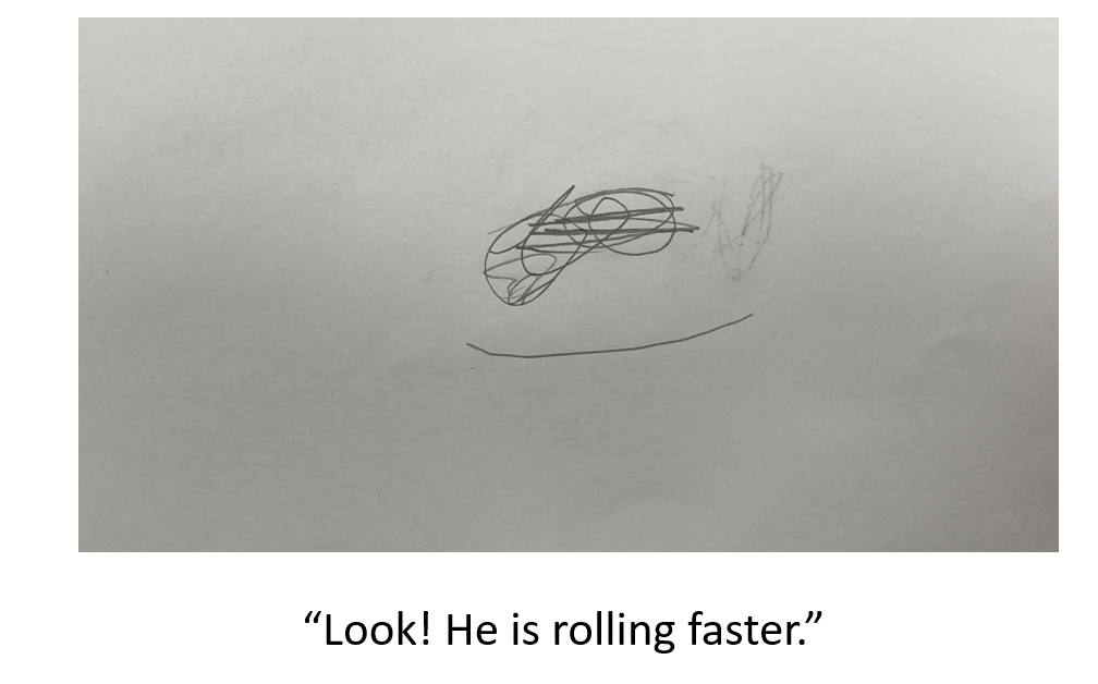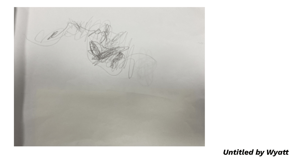 The youngest children, even before they begin to master conventional writing, convey meaning through written symbols – when given the opportunity. Take Wyatt as an example. Below is the first picturebook Wyatt ever made. Wyatt attends a school in an economically-underserved area of Leeds. Wyatt produced this book on his first week at Nursery.