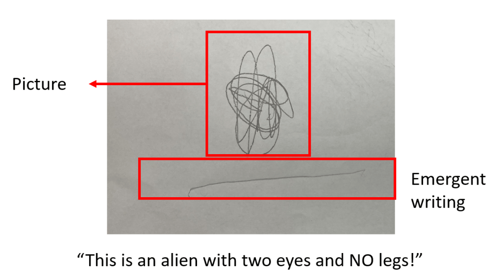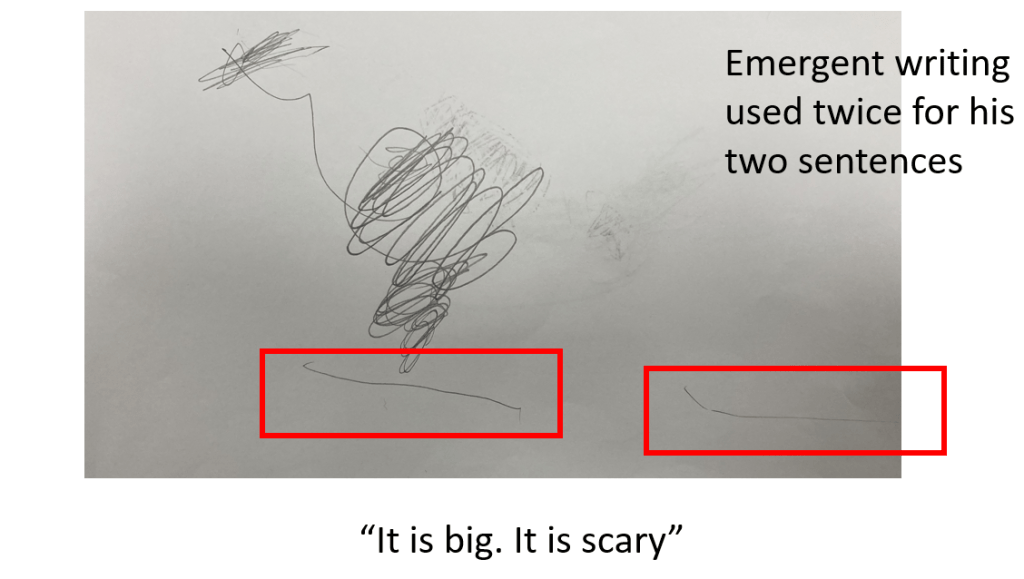 As you can see from Wyatt’s book, the development of composition – the ability to generate ideas, organise them, and express them is a critical aspect of emergent writing. However, once letter formation and encoding instruction is introduced, children transition quickly towards using informed spelling, writing sentences, and making simple stories and information texts. Therefore, emergent writing only acts as a very temporary scaffold [LINK].