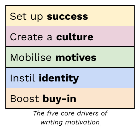 Together, these drivers provide a framework for action that all teachers can use to build pupils’ writing motivation. In our book, we take the best of motivational psychology and match it beautifully to evidence-informed teaching practices.