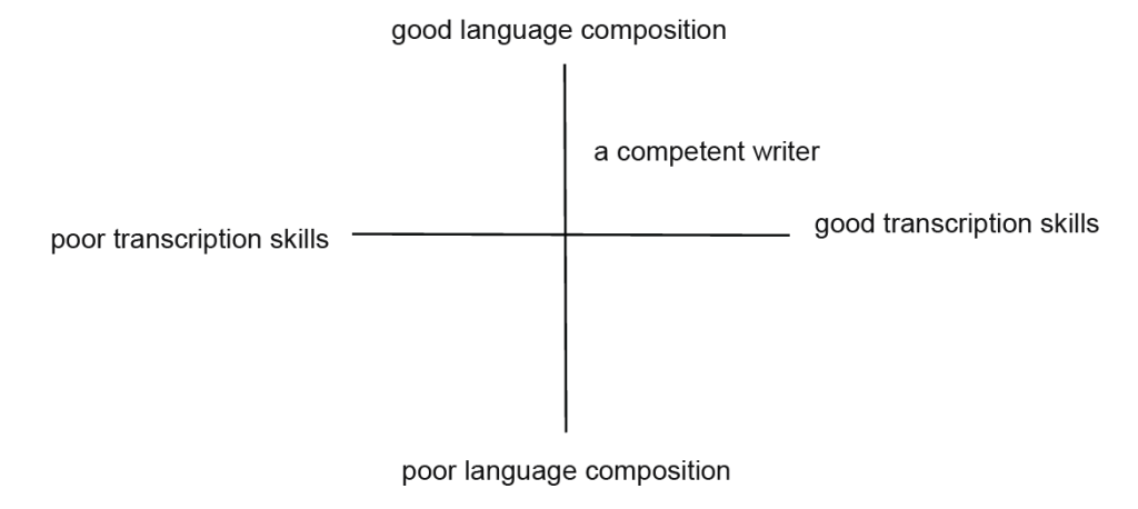 | Composition | Generating ideas, communicating with intent, writing for a reader | Entirely absent |