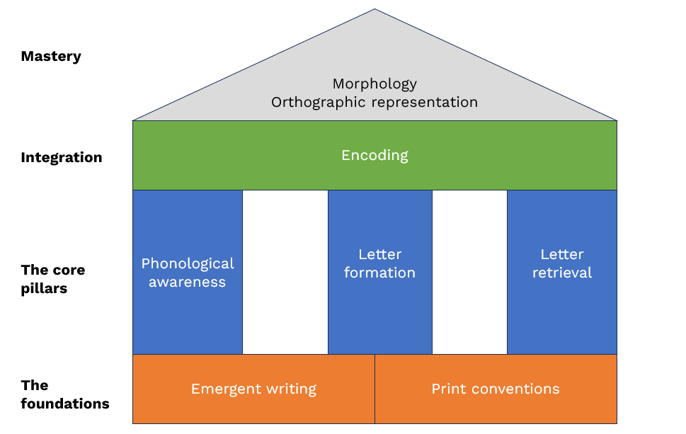 Successful word writing is a complex task requiring the integrated effort of several literacy skills (Feldgus et al. 2017; Treiman & Kessler 2014; Zhang et al. 2025). These include: